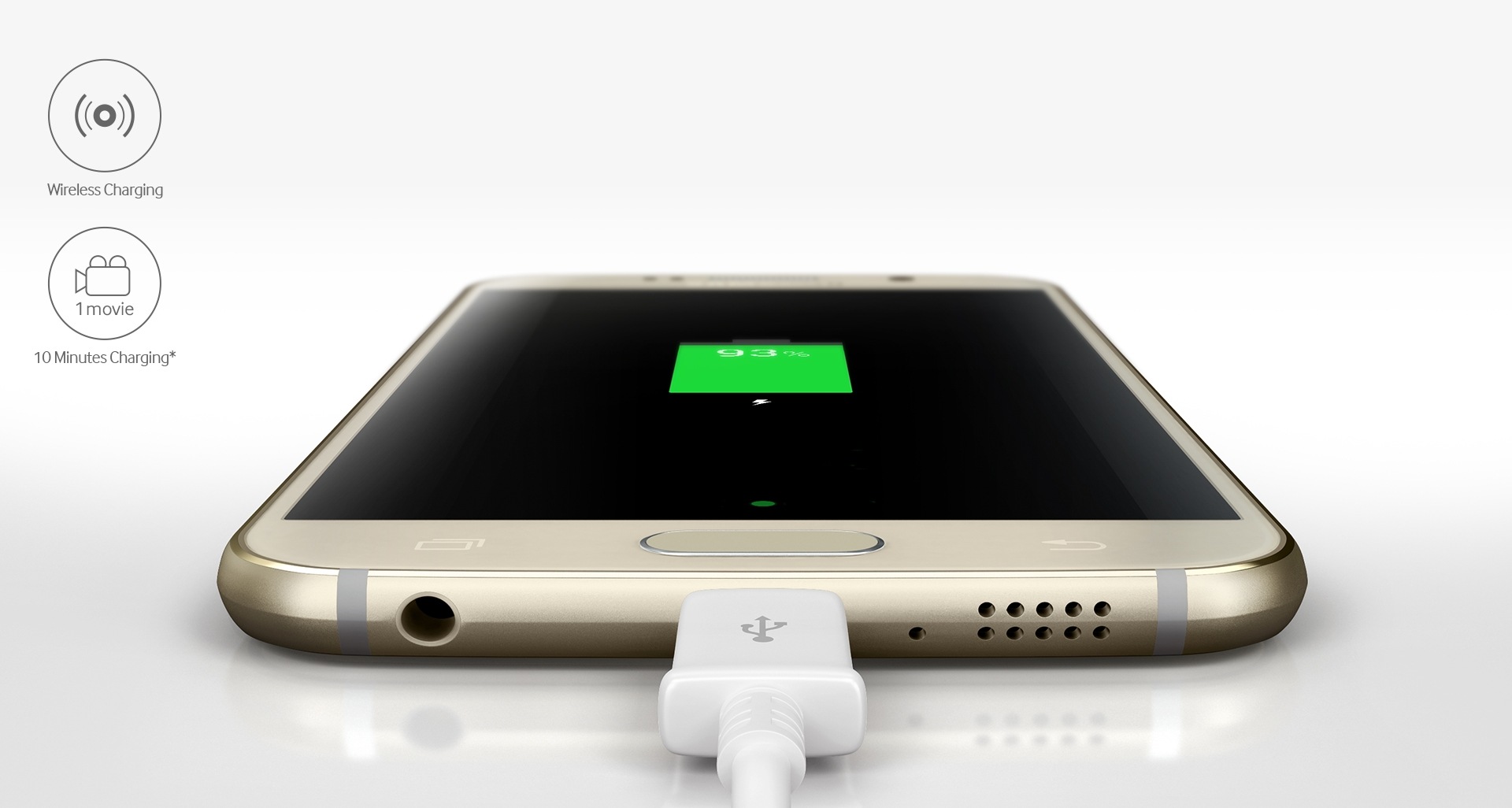 Never worry about your battery again thanks to the Samsung Galaxy S6’s lightning-fast charging speed, which is up to 1.5 times faster than previous models. Its wireless charging compatibility means you can simply pop the Samsung Galaxy S6 onto a compatible charging pad for a wire-free recharge. * Recharge time and duration may vary according to individual usage patterns. Battery life may last for less than 2 hours when watching HD movie or the higher resolution movie. * Wireless charging pad not included. * Only available with WPC- and PMA-compatible wireless charging pads.